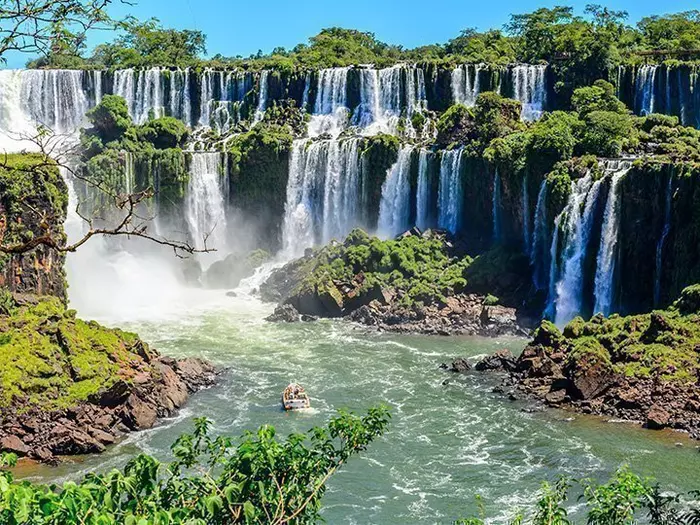 Die Iguazú-Wasserfälle sind die größten Wasserfälle der Welt. Sie bestehen aus 275 verschieden großen Wasserfällen, die sich hufeisenförmig am Fluss Iguazú 2,7 km weit ausbreiten. Viele Wasserfälle fließen zusammen und stürzen in rauschenden Kaskaden über die 85 Meter hohen Felsen.