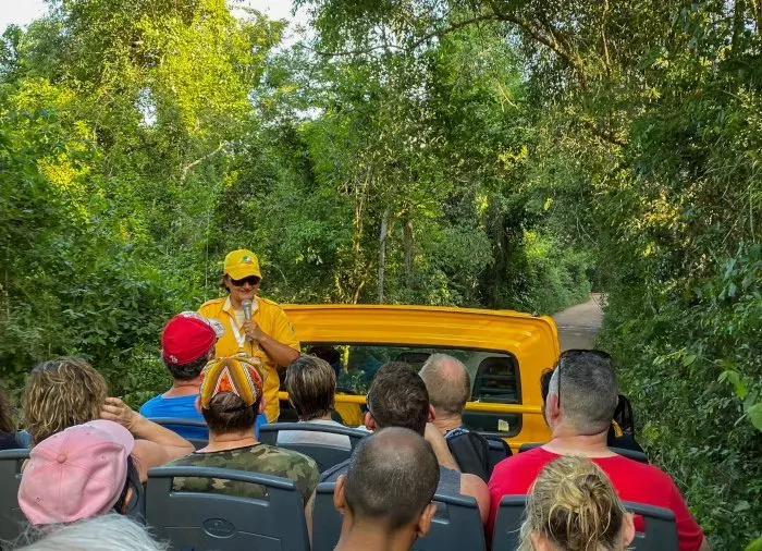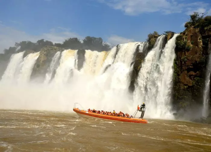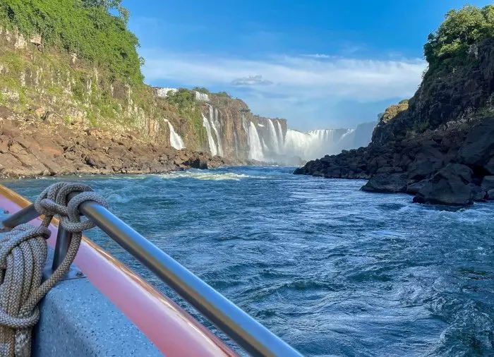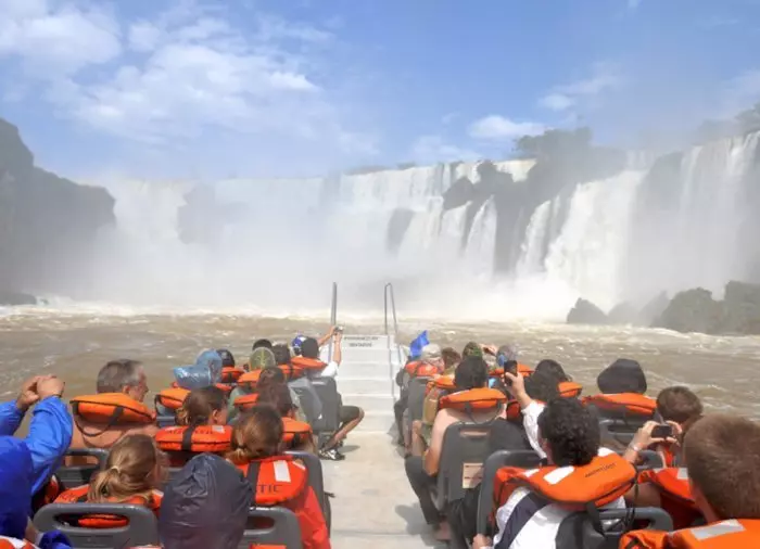 Sie sehen die gigantischen Wasserfälle von unten, und schließlich fahren Sie unter einen der kleineren Wasserfälle, sodass Sie damit prahlen können, unter den Iguazú-Wasserfällen eine Dusche genommen zu haben! Natürlich bleibt es völlig Ihnen überlassen, ob Sie Lust haben, sich mitten unter den Vorhang aus Wasser zu stellen. So oder so werden Sie bei diesem Ausflug völlig durchnässt. Es ist daher empfehlenswert, Badebekleidung oder einen Regenmantel anzuziehen. Sie erhalten eine wasserdichte Tasche für Ihre Wertgegenstände.