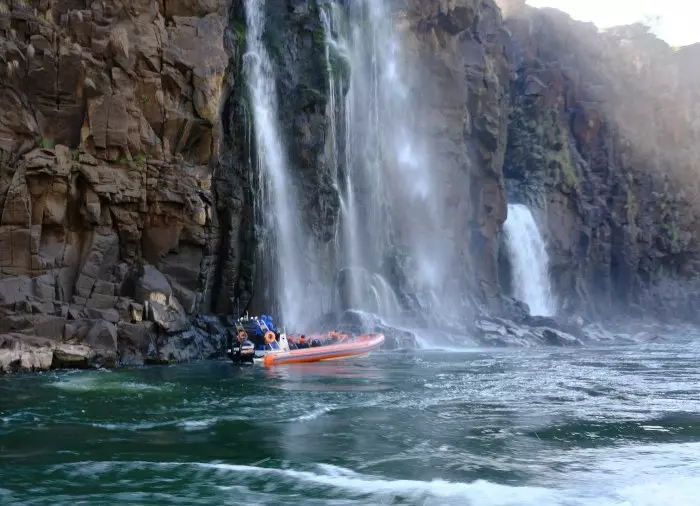 Den ersten Teil der Strecke legen Sie auf einem 5 km langen Schotterweg zum Hafen mit einem Allradbus zurück. Von dort führt eine steile Treppe zum Hafen hinunter, wo ein Speedboot darauf wartet, Sie den Fluss zu den tosenden und rauschenden Wasserfällen zu bringen.