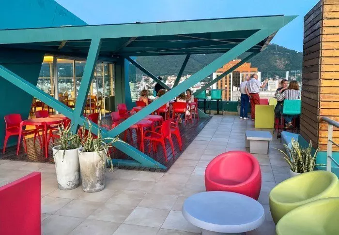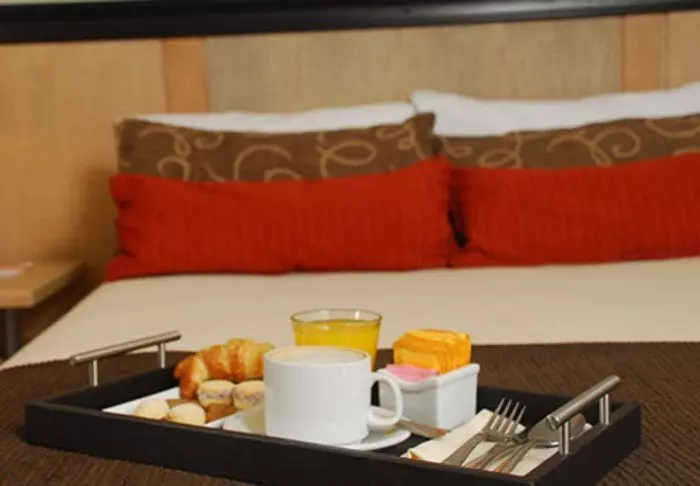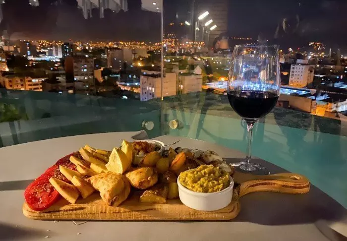 Im Hotel gibt es 3 Restaurants. Im 1. Stock befindet sich das Frühstücksrestaurant, in dem das im Preis inbegriffene Frühstück als Buffet serviert wird. Im Erdgeschoss befindet sich die Restaurant-Bar Los Cerros, in der leckere einheimische und internationale Gerichte serviert werden. Wenn Sie nicht so hungrig sind, können Sie leichte Tapas und Snacks auf der Dachterrasse des Hotels mit ihrer atemberaubenden Aussicht auf die Stadt und den Berg San Bernardo genießen. Wir können außerdem wärmstens empfehlen, hier oben den Sonnenuntergang mit einem Glas regional hergestelltem Rotwein zu bestaunen.