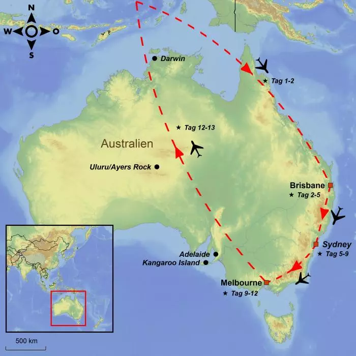 Wir empfehlen Ihnen daher, die Reise noch mit einigen unserer vielen Ausflugsmöglichkeiten zu verschönern. So können Sie die einzigartige Natur und das einzigartige Tierreich Australiens hautnah erleben. Sie machen eine phänomenale Reise mit großartigen Natur- und Kulturerlebnissen.