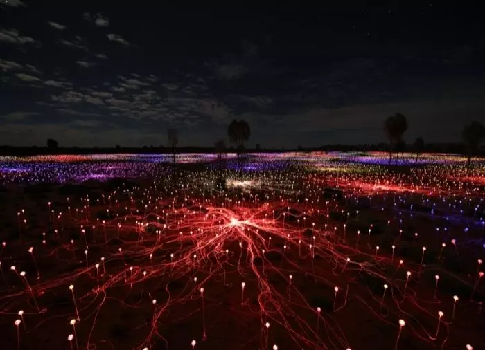 Die Kunstinstallation Field of Light wurde im April 2016 in Uluru eröffnet und sollte eigentlich nur vorübergehend zu sehen sein. Die Ausstellung wurde aufgrund ihrer Beliebtheit aber immer wieder verlängert, bis man 2019 entschied, dass die Ausstellung dauerhaft zugänglich bleiben soll.