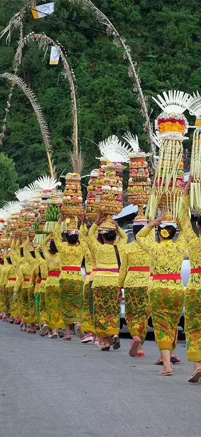 Ubud ist eine herrliche Stadt mit einem ganz besonderen Charme und einer tollen Atmosphäre. Religion und Tradition haben einen hohen Stellenwert. In den Gassen und Straßen finden häufig zeremonielle Umzüge statt, bei der Sie die balinesischen Hindus auf dem Weg zu den Tempeln sehen können, in weiß gekleidet, mit großen Körben mit Obst und Blumen. Ein unglaublich schönes und stimmungsvolles Erlebnis.