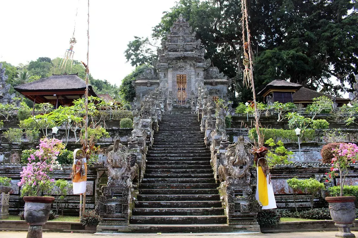 Nach dem Besuch in Penglipuran werden Sie zum nahe gelegenen Tempel Pura Kehen aus dem 11. Jahrhundert gefahren. Der Tempel wird aufgrund seiner Gemeinsamkeiten und der fantastischen Natur, welchen ihn zu einem der schönsten Tempel Balis macht, häufig mit dem großartigen Muttertempel Besakih verglichen. Der Tempel Pura Kehen liegt auf einem Hang auf der Anhöhe Bukit Bangli. 38 Stufen führen zum wunderschön geschmückten Eingangstor, vor dem sich der Tempel mit Gärten, beeindruckenden Steinfiguren und den ikonischen Meru-Heiligtümern mit Strohdächern ausbreitet.