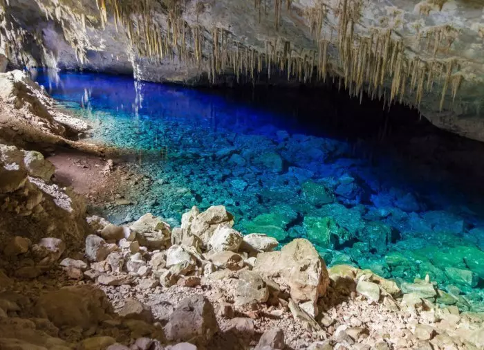 Erleben Sie die wunderschöne natürliche Höhle Gruta do Lago Azul, die für ihr glasklares türkisblaues Wasser und ihre Tropfsteinformationen berühmt ist.