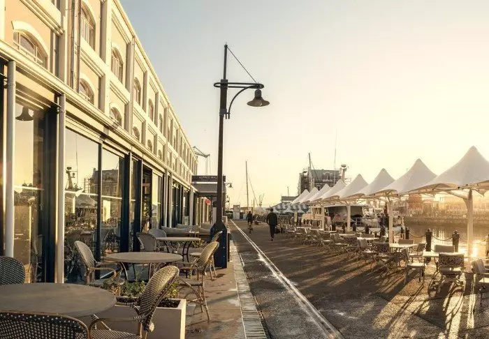 Der Wellnessbereich und der Swimmingpool liegen auf einer eigenen Insel im Hafen und sind beinahe von einem tropischen Garten eingeschlossen – mitten in der Stadt. In der Lounge können Sie einen Cocktail und das Panorama auf den Tafelberg genießen, während Sie auf Ihren Tisch im einzigen Nobu-Restaurant Afrikas warten. Es ist sehr beliebt, buchen Sie daher rechtzeitig einen Tisch.