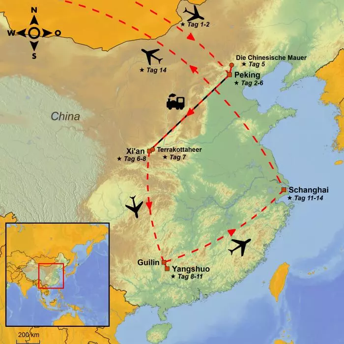 Diese Reise führt Sie zu den absoluten Höhepunkten Chinas: Die Verbotene Stadt, die Chinesische Mauer, das Terrakottaheer und die malerische Landschaft von Yangshuo. Die Reise endet im faszinierenden Shanghai.