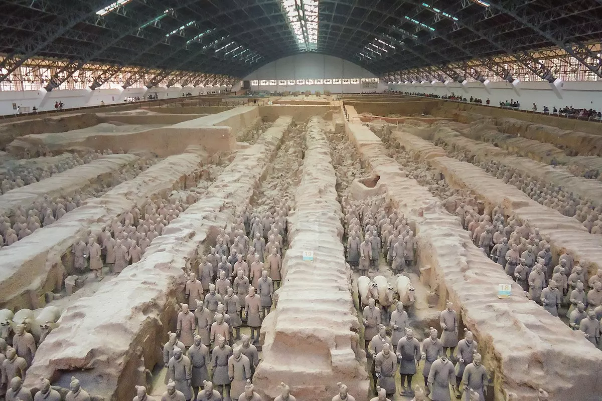 Einheimische Bauern fanden bei ihrer täglichen Arbeit auf dem Feld 1974 Fragmente einer Skulptur in Lebensgröße. Archäologen setzten die Ausgrabung fort. Das Ergebnis war der größte Fund der Welt von Skulpturen unter der Erde. Sie entdeckten bei der Ausgrabung über 7.000 Terrakottakrieger, Pferde und Wägen. Die Krieger sind zwischen 175 und 190 cm hoch und alle unterschiedlich geformt. Alle haben unterschiedliche Kleidung, Frisuren und Gesichtszüge. Die Krieger stehen alle in der Nähe der Grabstätte des Kaisers Qin Shi Huang in einer Reihe da. Es wird nämlich erzählt, dass die Krieger geformt wurden, um ihren Herrscher im Leben nach dem Tod zu beschützen.