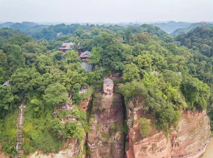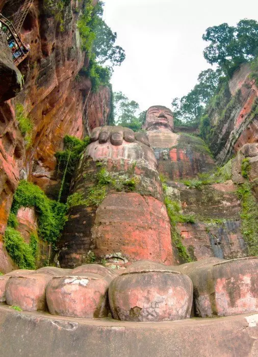 Der Große Buddha von Leshan wurde aus einem roten Sandsteinfelsen gehauen, der dort steht, wo die Flüsse Dadu, Minjiang und Qingyi zusammenfließen. Laut einer chinesischen Sage verschwanden viele Schiffe spurlos in den Strudeln am Zusammenfluss der Flüsse, die Strömung war hier sehr stark. Ein Mönch mit dem Namen Hai Tong schlug daher vor, einen riesigen sitzenden Buddha zu errichten, welcher über die Schiffe wachen und die bösen Flussgötter beruhigen sollte. Jahrelang bat er um Mittel, um das Projekt beginnen zu können. Es begann schließlich während der Tang-Dynastie im Jahr 713. Leider verstarb der Mönch, als das Projekt erst zur Hälfte fertig war. Nach seinem Tod stoppte man das Projekt aufgrund der fehlenden Finanzierung vorläufig. Erst 70 Jahre späte beschloss der regionale Gouverneur Wei Gao, das Projekt zu finanzieren. Die Statue wurde im Jahr 803 fertiggestellt.
