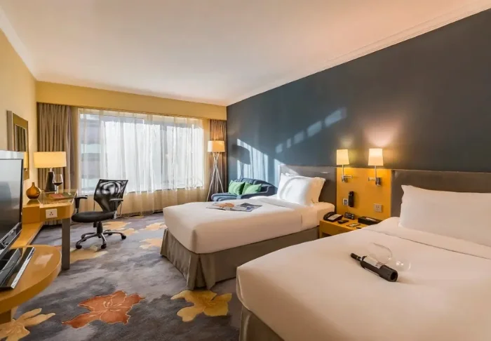 Sie übernachten in einem 32 m² großen Standardzimmer mit Blick auf die Stadt. Das Zimmer ist mit Klimaanlage, Flachbildfernseher, Safe, Minibar, elektrischem Wasserkocher und WLAN ausgestattet. Während Ihres gesamten Aufenthalts steht Ihnen kostenloses Mineralwasser zur Verfügung. Ihr Zimmer verfügt wahlweise über ein Doppelbett oder zwei Einzelbetten sowie über ein Sofa und einen Schreibtisch – so haben Sie ausreichend Platz, um sich nach einem erlebnisreichen Tag zu entspannen. Das Bad ist mit einer Dusche ausgestattet und bietet Pflegeprodukte, einen Bademantel, Hausschuhe sowie einen Föhn.