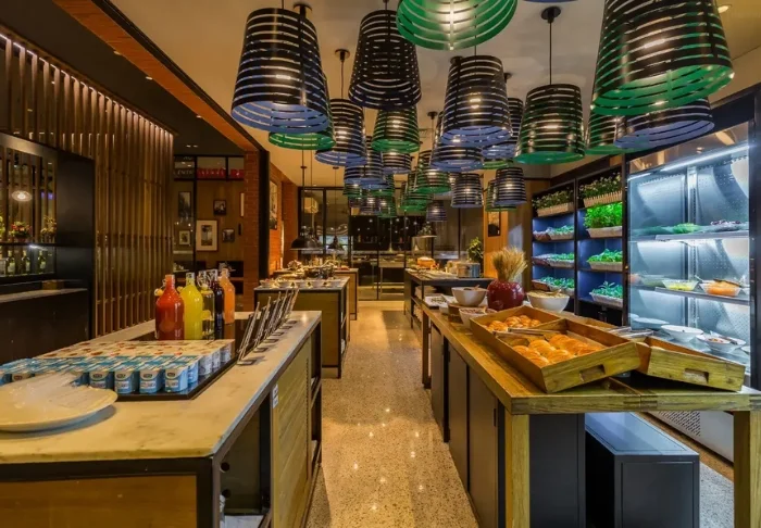 Im Hotel gibt es eine Bar und ein Restaurant, in dem jeden Morgen ein herrliches Frühstücksbuffet auf Sie wartet.