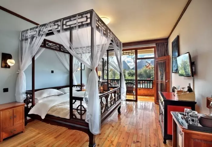 Die stilvoll eingerichteten Zimmer sind mit traditionell chinesischen Betten und beruhigenden Farben an den Wänden ausgestattet. In jedem Zimmer gibt es eine Klimaanlage, eine Minibar, einen Safe, WLAN und ein eigenes Badezimmer, aber weder ein TV-Gerät noch ein Telefon, damit Sie die wunderschöne entspannende Umgebung wirklich genießen können.