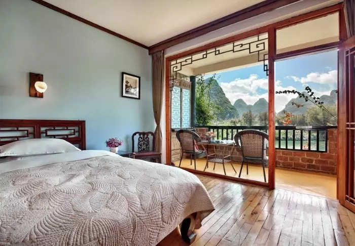 Etwas außerhalb von Yangshuo befindet sich das friedliche Yangshuo Mountain Retreat in einer herrlichen Umgebung mit grünen Bäumen und Kalksteinbergen, am Ufer des Flusses Yulong. Hier können Sie Ihre innere Ruhe wiederfinden, während Sie die prachtvolle Natur wie ein Schwamm aufsaugen.