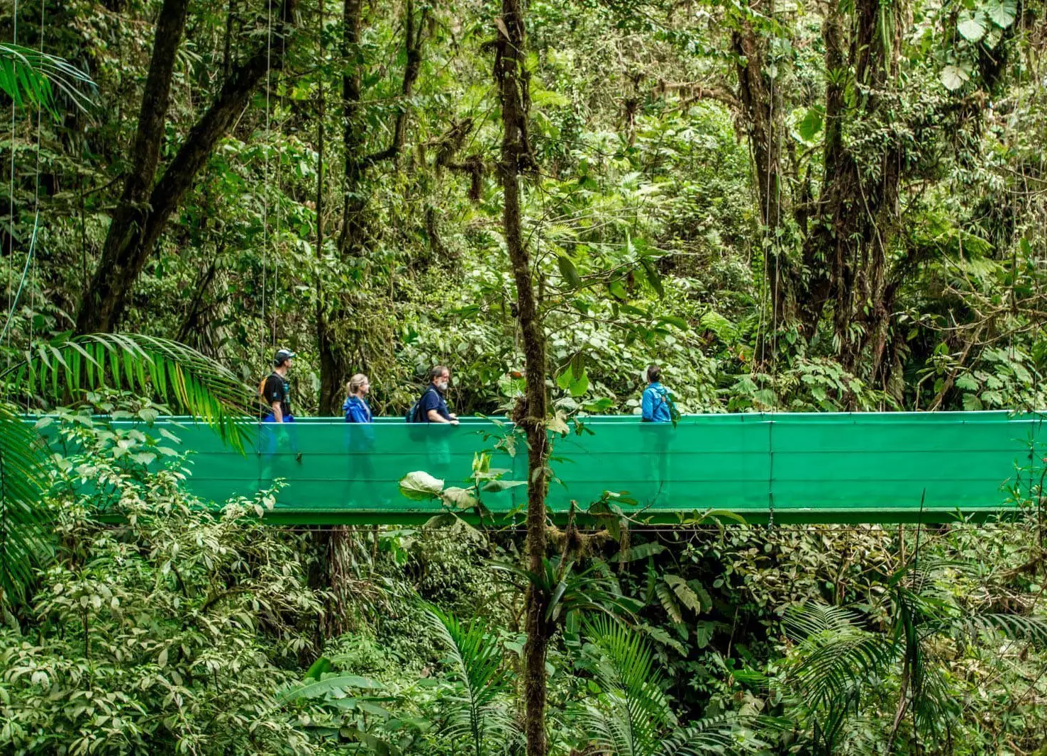 Im Regenwald wartet eine aufregende, rund 2,5 Kilometer lange Wanderung auf Sie, bei der Sie über Hängebrücken zwischen den Baumkronen gehen! Dabei werden Sie die ganz besondere mystische Atmosphäre spüren, welche durch den Nebel in dieser abenteuerlichen Landschaft entsteht. Sie sind umgeben von Orchideen, Farnen, Moos und unzähligen Pflanzenarten, die an den Stämmen der Bäume wachsen. Von den Baumkronen dieses Zauberwaldes zwitschern bunte Vögel wie z. B. der Quetzal, der Gelbscheitel-Organist und der Schillerglanzstar. Der Nebelregenwald Monteverde beheimatet rund 400 verschiedene Vogelarten.