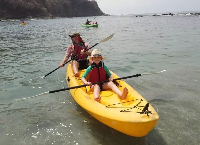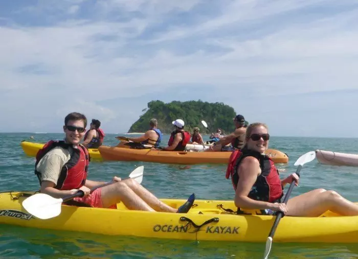 Sie werden vom Hotel abgeholt und zum südlichen Teil des Strandes Playa Sámara gebracht. Dort erfahren Sie, wie man mit einem Kajak fährt, erhalten eine Schwimmweste und ein Paddel. Sie machen sich mit dem Kajak vertraut. Von hier fahren Sie in einem offenen Zweierkajak aufs offene Meer hinaus. Ihr Guide zeigt Ihnen den Weg zur kleinen Insel Chora.
