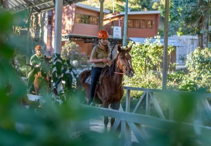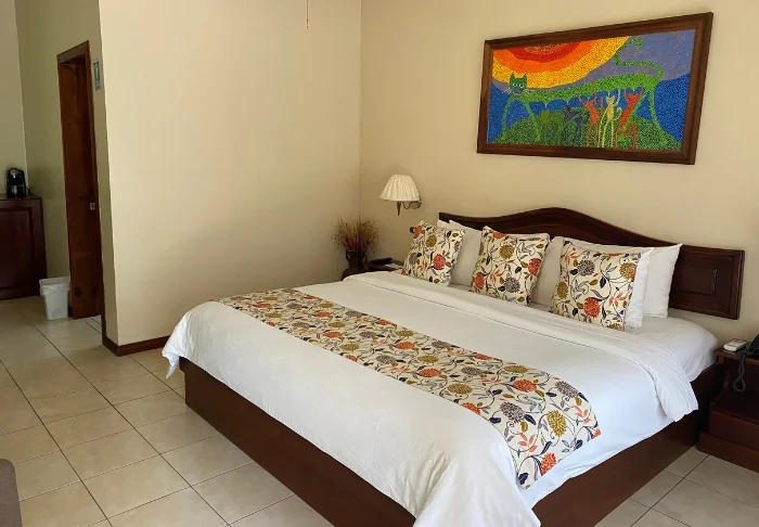 Es gibt dort einen mit natürlichem Quellwasser gespeisten Swimmingpool. Die 54 Zimmer haben kleine Balkone, von denen man die Aussicht auf die Vulkane und Haciendas genießen kann, und sind mit Klimaanlage, Safe und Fernseher ausgestattet.