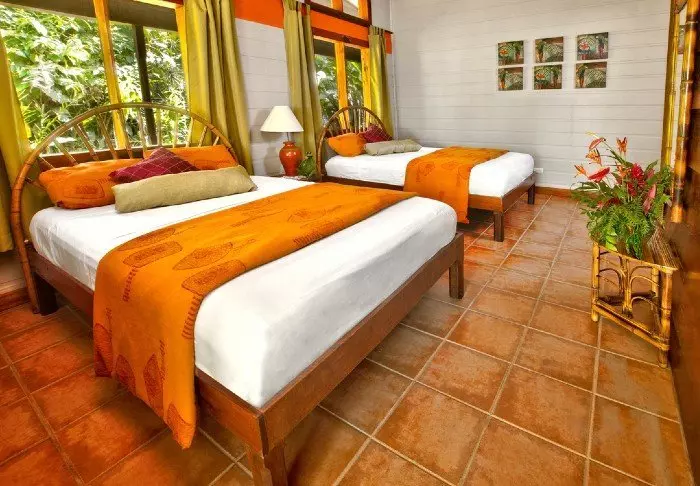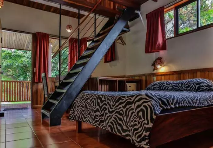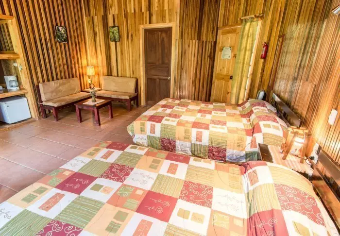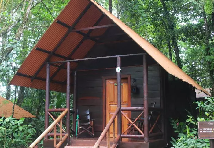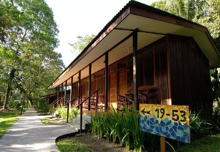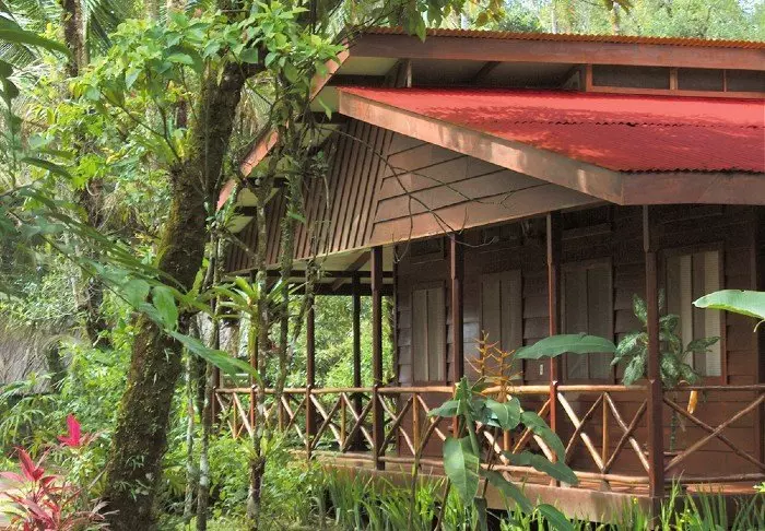 Die Lodge besteht aus Holzhütten in rustikalem Stil, die gut in die natürliche Umgebung passen. Sämtliche Hütten sind mit einem eigenen Badezimmer und einem TV-Gerät ausgestattet. Sie besitzen alle einen eigenen Balkon, auf dem Sie herrlich mit einer hervorragenden Tasse costa-ricanischen Kaffee und einem guten Buch entspannen können, während Sie den Blick auf die raue Natur des Dschungels genießen.