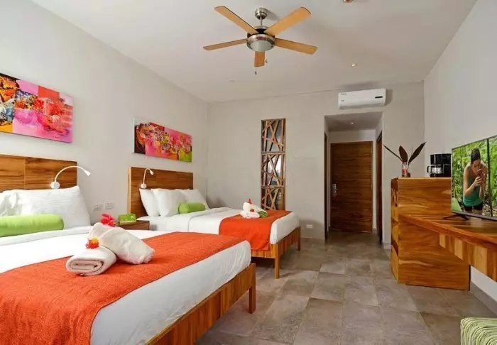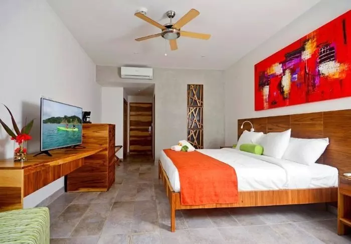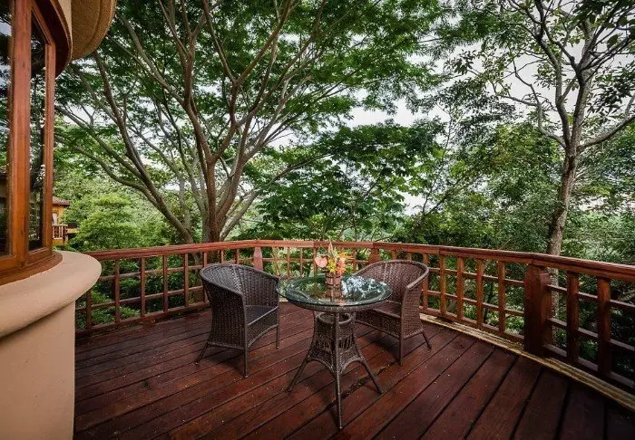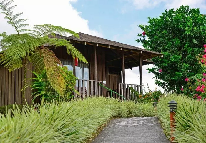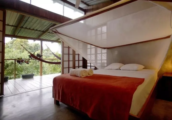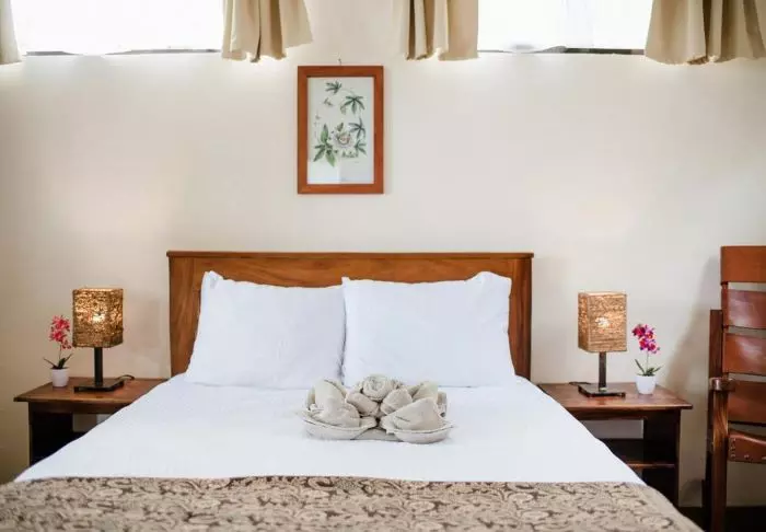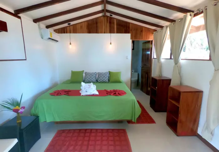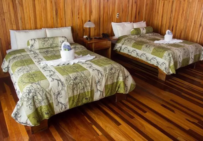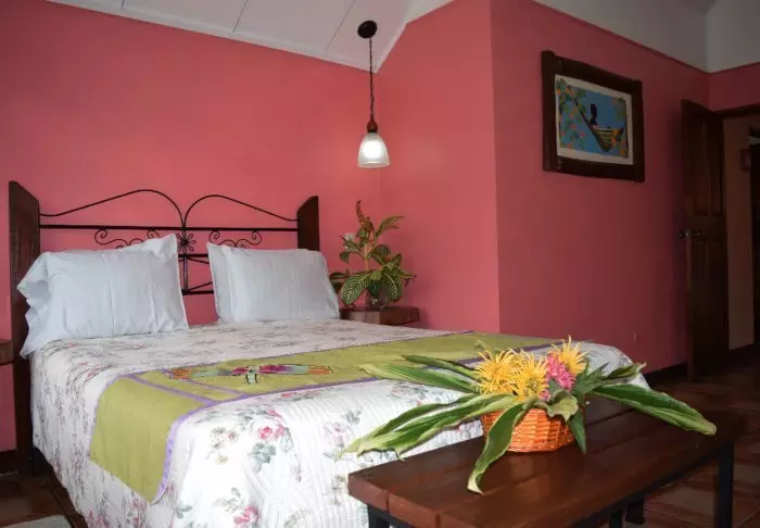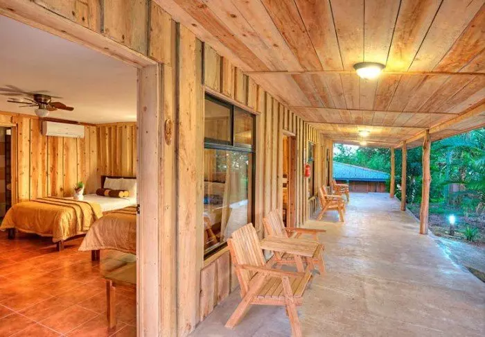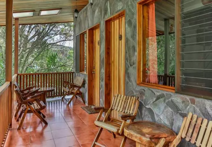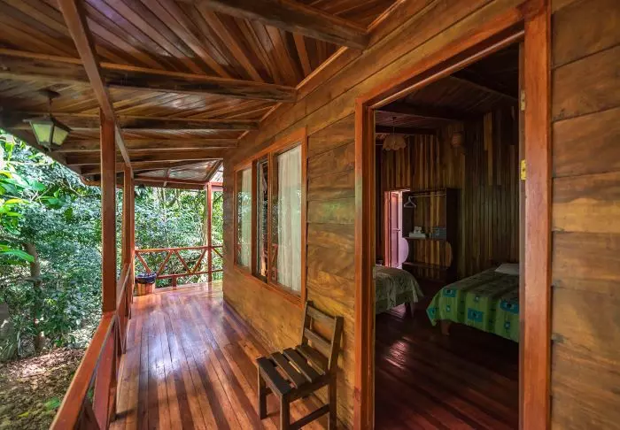 Die Zimmer des Hotels bestehen hauptsächlich aus Holzelementen und sind in natürlichen Farben mit Grüntönen eingerichtet. Alle Zimmer sind mit Klimaanlage, Kabelfernsehen und Minikühlschrank sowie mit einem eigenen Badezimmer mit Föhn ausgestattet. Darüber hinaus gehört zu jedem Zimmer eine eigene kleine überdachte Veranda mit Stühlen. Dort können Sie sich entspannen und die grüne Umgebung genießen. Vielleicht sehen Sie sogar einen bunten Schmetterling oder Kolibri.