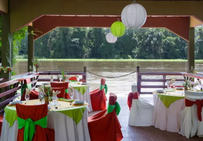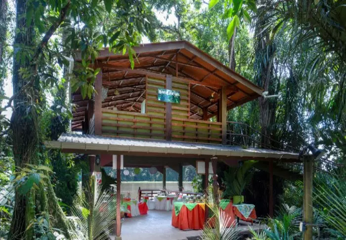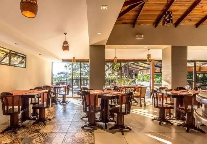 Im Restaurant können Sie sowohl traditionelle costa-ricanische Gerichte als auch europäische Gerichte mit regionalen Zutaten bestellen, während Sie die Aussicht auf die blühende Natur um die Lodge bewundern. Auch das im Preis enthaltene Frühstück wird hier serviert.
