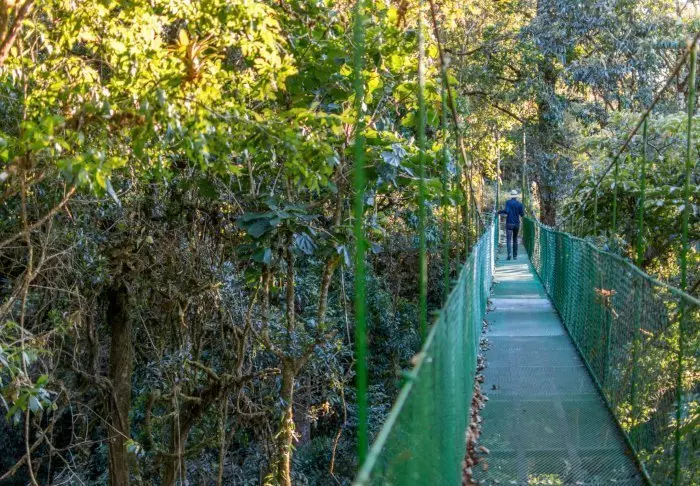Wenn Sie sich für die Jaguarundi Lodge entscheiden, übernachten Sie zentral im kleinen Dorf Santa Elena, das in der Nähe des wunderschönen Nebelregenwaldes von Monteverde liegt. Nicht weit entfernt finden Sie Restaurants, Cafés und kurze Wanderrouten. Das Hotel ist dafür bekannt, im „Hintergarten“ eine eigene Hängebrücke zu haben. Und so können Sie den Tag auch mit einem Spaziergang direkt in der grünen Natur beginnen, in der sich die vielen Tiere in diesem Gebiet tummeln.