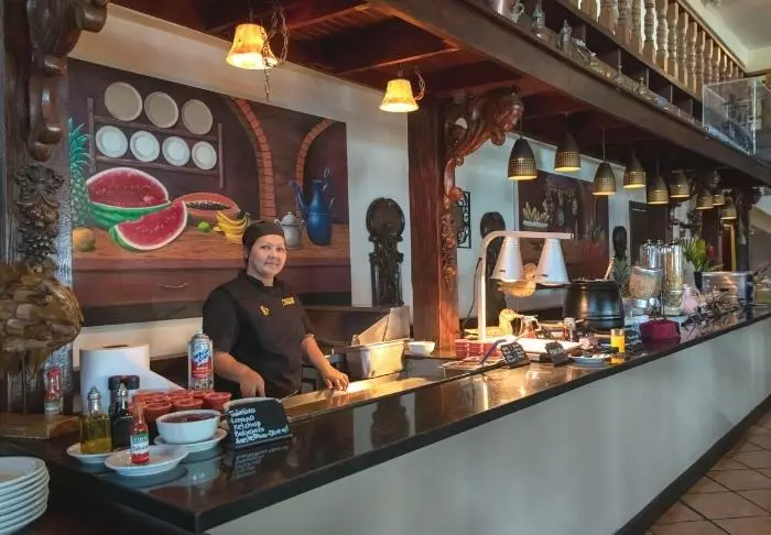 In der malerischen strohbedeckten Restaurant-Bar werden ein tropisches Frühstück, erfrischende Getränke und Gerichte aus der argentinischen Küche kombiniert mit costa-ricanischen Zutaten und Gourmeterlebnissen serviert.