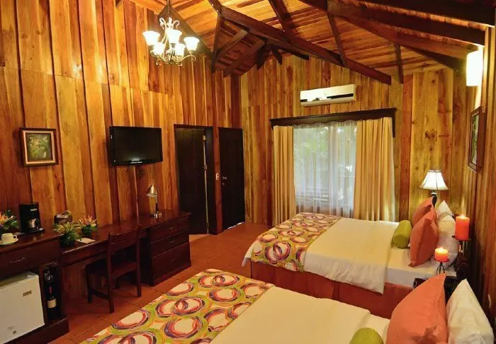 Für alle 60 Zimmer der Lodge holte man sich Inspiration von den ersten Berghütten in Monteverde. Sie sind mit Holzmöbeln und in warmen Farben eingerichtet. Die Hütten sind mit Kabelfernsehen, Telefon, Safe, Kaffeemaschine und einem eigenen Bad/einer eigenen Toilette ausgestattet. Zu den Zimmern gehört eine Gemeinschaftsveranda, auf die Sie sich setzen und in einem der Stühle entspannen können.