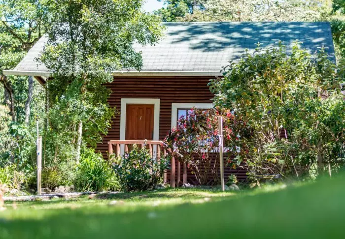 Die Holzhütten der Lodge wurden in rustikalem Stil erbaut und harmonieren somit perfekt mit dieser wunderschönen natürlichen Umgebung. Alle Zimmer sind schlicht, mit Holzmöbeln, TV-Gerät, Safe und eigenem Badezimmer eingerichtet. Es gibt vor Ort gratis WLAN. Der gemütliche Balkon lädt zum Entspannen ein. Genießen Sie die Geräusche der Tiere in der Umgebung und die Aussicht auf den umliegenden Garten und die Berge.