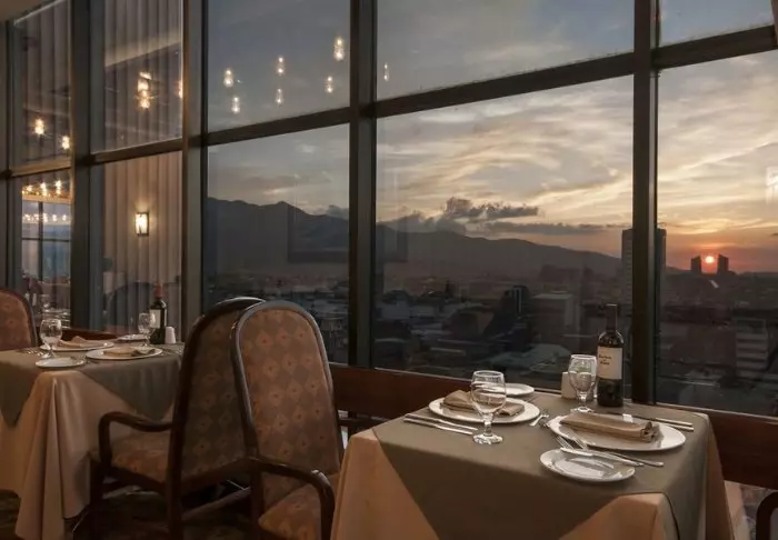 Im Hotel gibt es zwei Restaurants. Das Tropicana ist ein Buffetrestaurant, in dem sowohl internationale als auch regionale Gerichte serviert werden. Das im Preis enthaltene Frühstück wird hier serviert. Das elegante Restaurant El Mirador auf der 17. Etage serviert erlesene internationale Gerichte, die Sie bei einer fantastischen Aussicht auf die Stadt genießen können. Sie können sich außerdem in die Loungestühle setzen und einen Cocktail in der hoteleigenen Bar La Palma einnehmen. Darüber hinaus können Sie den Zimmerservice nutzen.