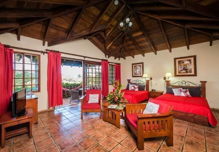 Das Hotel bietet insgesamt 30 geräumige Zimmer, die alle mit Kabelfernsehen, Telefon, Safe, WLAN und Kaffeemaschine mit regional hergestelltem Kaffee aus Monteverde ausgestattet sind.