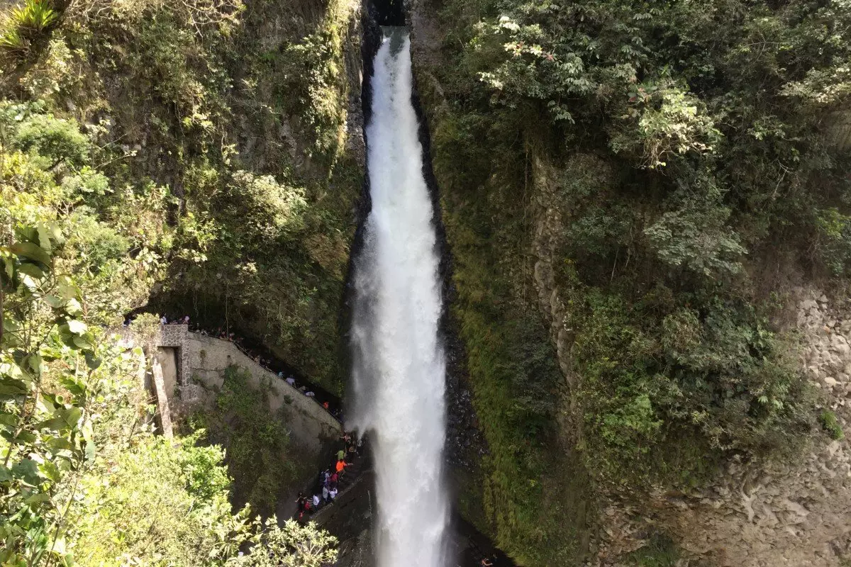Die Stadt ist von Wasserfällen umgeben. Beliebt ist ein Besuch des Pailón del Diablo, des größten Wasserfalls der Gegend, der mit seiner Kraft und Stärke beeindruckt. Dorthin kommt man mit dem regionalen Chiva-Bus, einem bunten Bus ohne Türen und Fenster, sodass man eine tolle Sicht auf die wunderschöne Natur hat. Dieser Ausflug kann ganz einfach vor Ort organisiert werden. Die Kosten belaufen sich auf rund 15 USD pro Person.