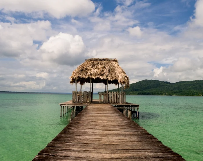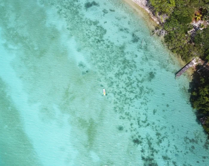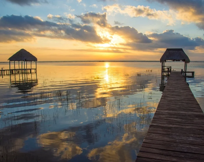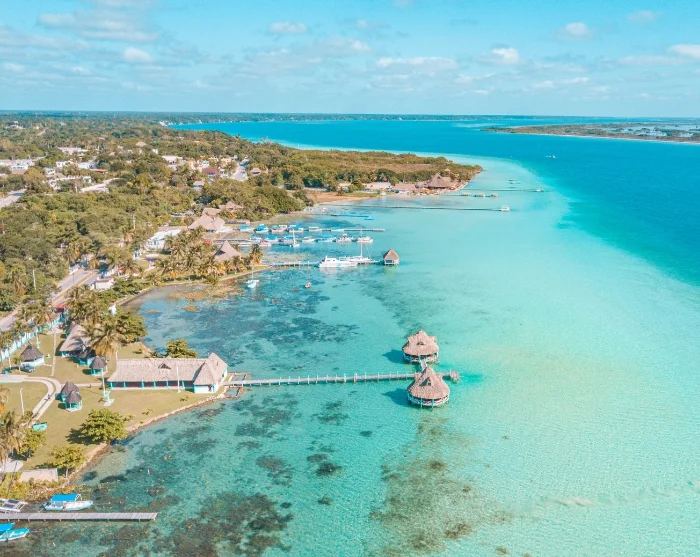 Der nächste Halt ist Bacalar in Mexiko, das für seine friedliche Atmosphäre und die spektakuläre siebenfarbige Lagune bekannt ist, in der Sie baden und den Anblick der Blautöne genießen können.
