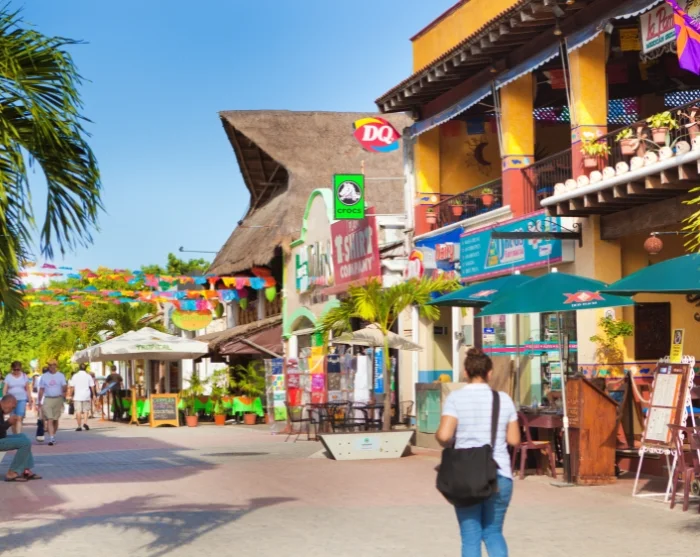 Das Herzstück von Playa del Carmen ist der Plaza Mayor, der zentrale Platz direkt am Strand. Von hier aus können Sie durch die Avenida 5, die lebhafte Hauptstraße mit modernen Boutiquen, kleinen Handwerksständen, netten Cafés, Restaurants und Bars schlendern.