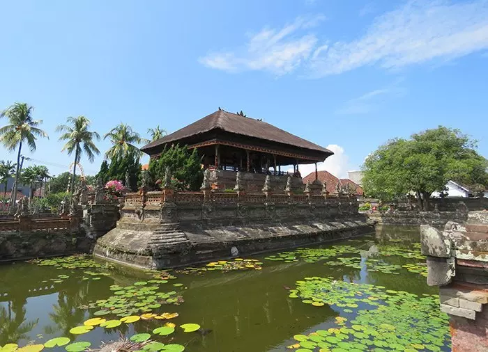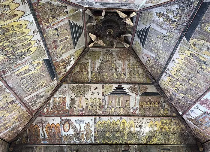 Schließlich wird am uralten wunderschönen Justizpalais Kerta Gosa in Klungkung angehalten. Er gehört zum historischen Palast Puri Semarapura. Das Palais ist auch unter dem Namen Schwimmender Pavillon bekannt. Die Decke dieses offenen Gebäudes wurde mit Gemälden geschmückt, die z. B. zeigen, welche Strafe uns nach dem Tod erwartet, wenn man sich im irdischen Leben nicht anständig verhält.