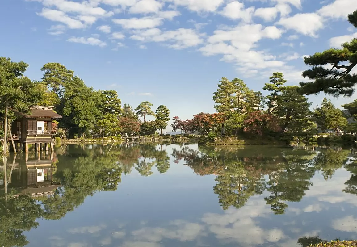 Danach besuchen Sie einen beinahe 400 Jahre alten Park, den Kenroku-en, der zu den schönsten Parks Japans gehört. Er ist daher auch sehr beliebt. Der Name Kenroku-en deutet auf die perfekte ästhetische Kombination von reichlich Wasser, Weitläufigkeit und Ruhe hin, Elemente, die einen wunderschönen japanischen Garten ausmachen.