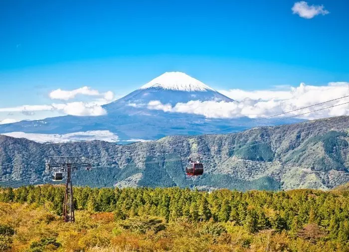 Danach nehmen Sie von der Haltestelle Owakudani die Seilbahn zur Talstation Togendai hinunter. Bei der Fahrt mit dieser längsten Seilbahn Japans, die an allen vier Seiten der Gondel Glasfenster bietet, können Sie die wunderschöne Landschaft so richtig genießen.