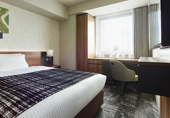 Eingerichtet wurde das Hotel im modernen japanischen Stil, mit Kunst von einheimischen Künstlern aus Kanazawa. Auch die Zimmer sind im selben Stil eingerichtet. Alle Zimmer sind zudem mit WLAN, Mini-Kühlschrank, Klimaanlage, Safe, Bügeleisen und Bügelbrett, TV-Gerät, Mineralwasserflaschen, Kaffee- und Tee-Ecke sowie Nachtkleidung, Bademantel und Hausschuhen ausgestattet. Im Badezimmer findet man eine Badewanne, kostenlose Toilettartikel und einen Föhn.