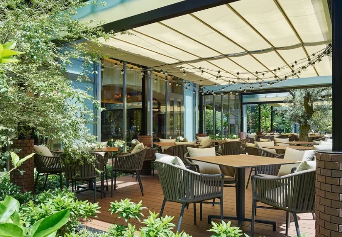 Das Frühstück wird im italienischen Restaurant des Hotels, Tanto Tanto The Gardens, serviert und bietet ein abwechslungsreiches Buffet mit sowohl japanischen als auch westlichen Gerichten. Im Laufe des Tages können Sie das Restaurant zum Mittag- oder Abendessen besuchen, wo italienische Klassiker mit Blick auf den grünen Innenhof des Hotels serviert werden. Wenn Sie etwas Schnelles benötigen, können Sie sich zudem im Cafébereich des Hotels etwas zu essen holen.
