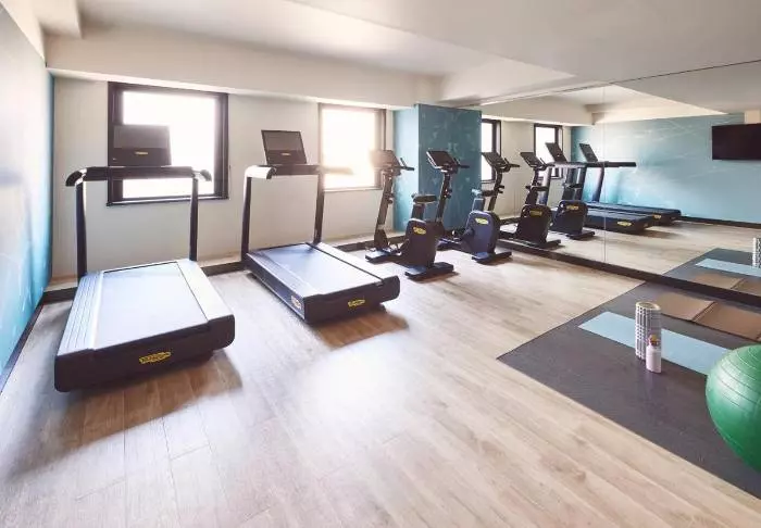 Zu den weiteren Einrichtungen gehört ein Fitnessraum mit Laufbändern, Heimtrainern usw.