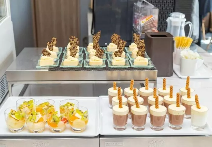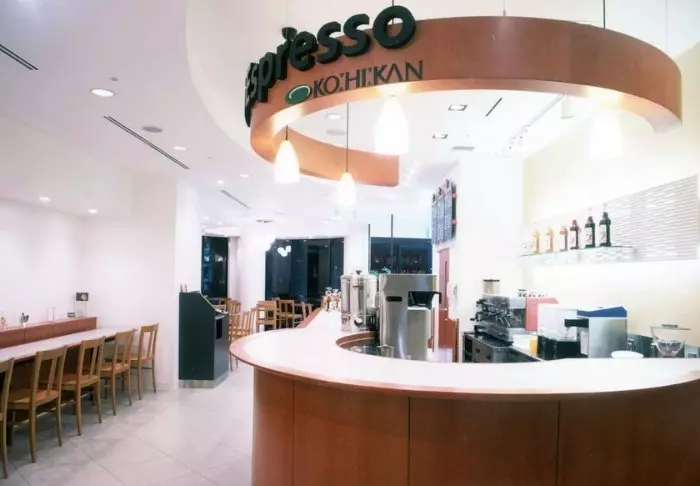 Das Café, Cafe di Espresso, bietet italienischen Espresso sowie Hotdogs, Sandwiches und Kuchen.