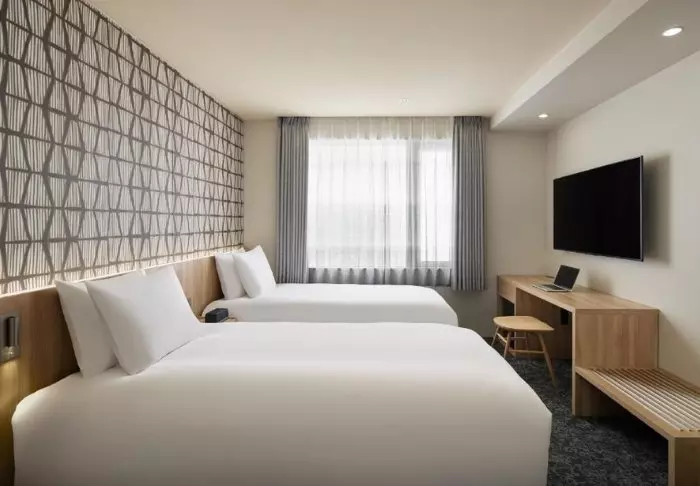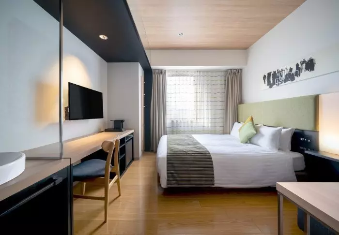 Das Hotel besticht durch ein modernes und stilvolles Design mit warmen Farbtönen und japanischem Minimalismus. Die Standardzimmer sind durchdacht mit allem ausgestattet, was Sie nach einem erlebnisreichen Tag benötigen, einschließlich WLAN, Klimaanlage, Kühlschrank, Fernseher und einem Wasserkocher, um Ihren Morgen mit einer Tasse grünem Tee oder Kaffee zu beginnen. Das funktionale Badezimmer ist mit Toilettenartikeln und einer Badewanne ausgestattet, in der Sie nach einem anstrengenden Tag entspannen können.