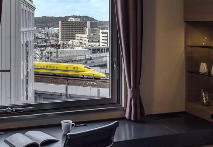 Die Zimmer sind einladend und geschmackvoll mit modernen Möbeln eingerichtet und bieten eine spektakuläre Aussicht auf die Stadt oder die umliegende Landschaft. Die Wände sind mit Kunstwerken verziert, die entweder den Wind darstellen, der über das Seto-Inlandmeer weht, oder Austern und Zitronen, zwei der Spezialitäten der Region. Alle Zimmer verfügen über WLAN, eine Minibar, Klimaanlage, einen Safe sowie einen Schreibtisch und einen Wasserkocher, um Tee oder Kaffee zuzubereiten. Die Badezimmer sind mit einem Haartrockner, Pantoffeln und Toilettenartikeln ausgestattet.