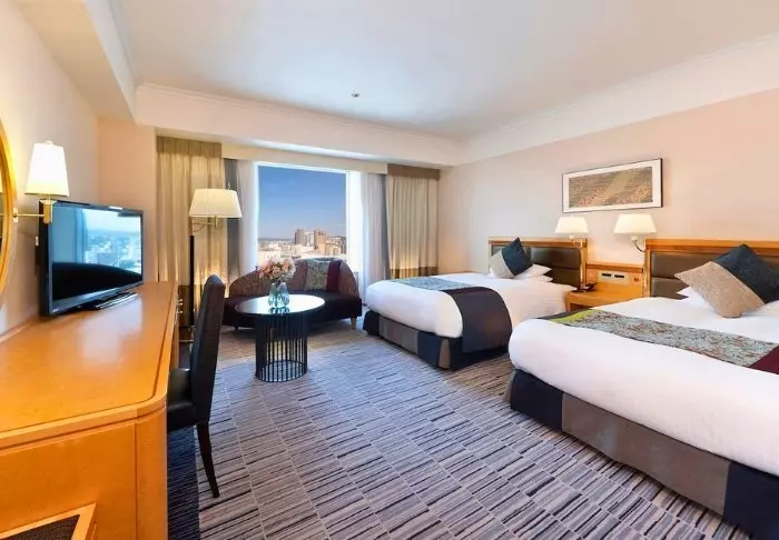 Das 21-stöckige Hotel verfügt über 304 Zimmer, die einen schönen Blick auf die Stadt bieten. Alle Zimmer sind in ruhigen, hellen Farben gehalten und mit modernen Annehmlichkeiten ausgestattet, um einen angenehmen Aufenthalt zu gewährleisten. Alle Zimmer verfügen über kostenlosen WLAN-Zugang, eine Klimaanlage, einen Safe, einen Minikühlschrank, einen Wasserkocher für Tee und Kaffee sowie einen Flachbildfernseher mit Zugang zu verschiedenen Streaming-Diensten. Die Betten sind bequem, und es gibt sowohl weiche als auch feste Kissen, um Ihre persönlichen Vorlieben für einen guten Schlaf zu erfüllen. Auch die Badezimmer sind modern und mit Regenduschen, Toilettenartikeln und Haartrocknern ausgestattet.