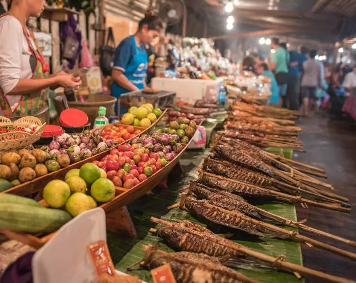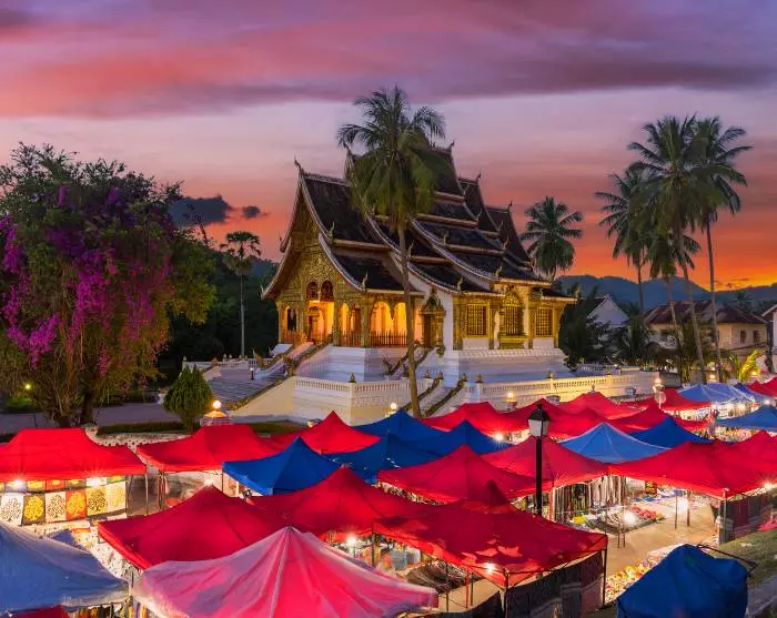Nach dem Einchecken steht der Rest des Tages zu Ihrer freien Verfügung. Lassen Sie sich den bunten und lebhaften Abendmarkt in Luang Prabang nicht entgehen: er gehört zu den besten in Südostasien. Der Markt ist jeden Abend von 17.00 – 22.00 Uhr geöffnet.