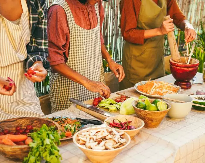 Heute lernen Sie, wie man traditionelle laotische Gerichte zubereitet, die den lokalen Mönchen serviert werden. Sie werden vom Hotel abgeholt und zum Phosy Markt gebracht, wo Sie zusammen mit Ihrem Guide eine einheimische Familie treffen. Gemeinsam kaufen Sie Lebensmittel für das Gericht des Tages, einschließlich Fisch, Gemüse und Obst. Nach dem Einkauf der Lebensmittel gehen Sie mit der einheimischen Familie nach Hause und lernen, wie man die traditionellen Gerichte zubereitet. Unter anderem helfen Sie bei der Herstellung von Klebreis (Khao Niew), Bambussprossensuppe (Keang Nor Mai), gedünstetem Fisch in Bananenblättern (Mok Pa), Luang Prabang-Eintopf (Ork Lamb) und Auberginensauce (Jeo Mak Kheua). Wenn die Gerichte fertig sind, gehen Sie zum nahegelegenen Tempel. Hier führen Sie Ihr Guide und die Familie durch die gesamte Zeremonie, bei der Sie Almosen verteilen und einen Segen von den Mönchen erhalten. Nach der Zeremonie verabschieden Sie sich von den Mönchen und kehren zum Mittagessen in das Haus der lokalen Familie zurück. Dies ist auch eine ausgezeichnete Gelegenheit, mehr über die laotische Kultur und den typischen Alltag einer Familie zu erfahren.