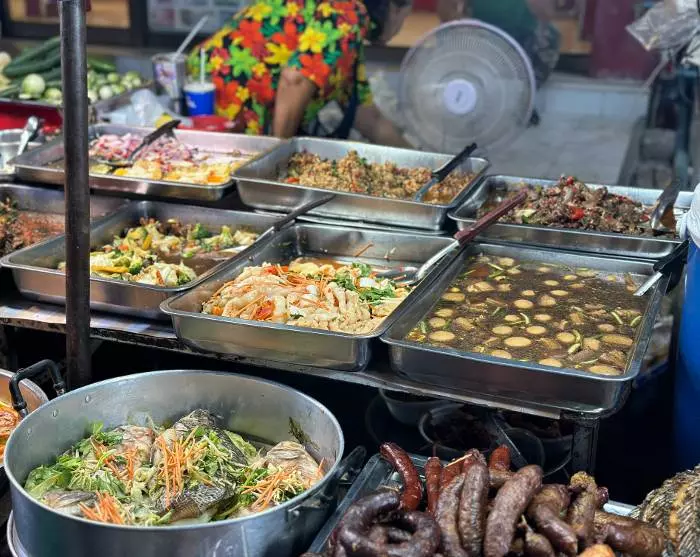 Siem Reap ist eine charmante und entspannte Stadt, in der Sie gemütliche Bummel im French Quarter oder unter den schattigen Bäumen entlang des Siem Reap River machen können. Überall gibt es kleine Geschäfte, Cafés und verschiedene Märkte. Sie können auch den Night Market von Siem Reap erkunden, wo der Duft der vielen Khmer-Delikatessen Ihnen das Wasser im Mund zusammenlaufen lässt. Wählen Sie ein köstliches Stück gegrilltes Fleisch oder ein Nudelgericht und setzen Sie sich auf einen der vielen Hocker neben die Einheimischen, die ebenfalls einen Snack genießen. Wenn Sie etwas mutiger sind, können Sie auch gegrillte Grillen am Spieß probieren.