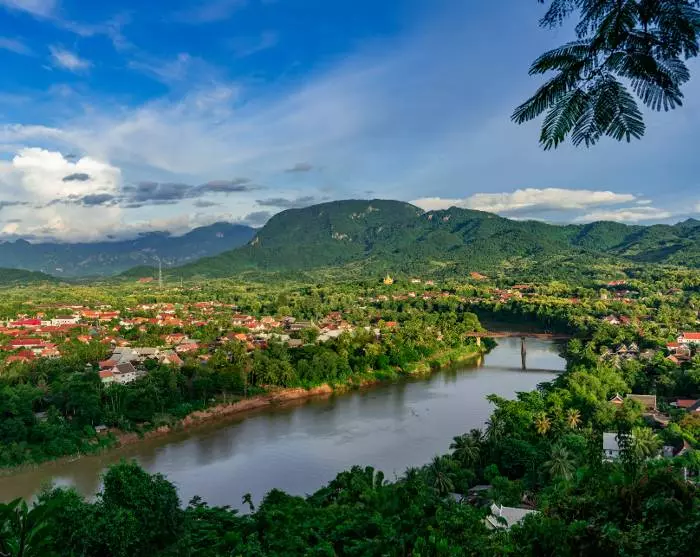 Das Stadtzentrum liegt auf einer Halbinsel am Zusammenfluss der beiden Flüsse Mekong und Nam Khan und ist von einer atemberaubenden Landschaft mit bewaldeten Bergen, Wasserfällen und Höhlen umgeben. Die üppige und grüne Natur wiederholt sich überall in der Stadt zwischen hübschen Tempeln und kleinen charmanten, stillen Gassen.