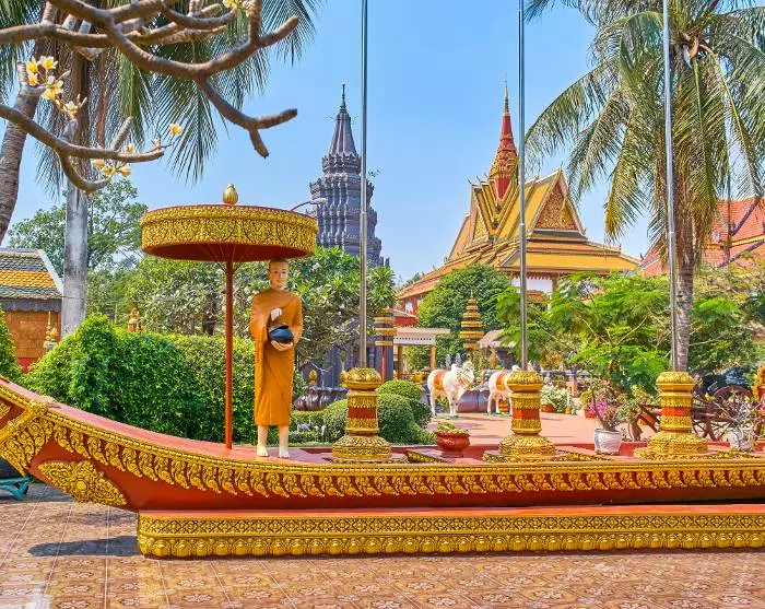 Wenn Sie die Stadt erkunden möchten, können Sie zum Beispiel den kleinen Park Royal Gardens besuchen. Oder wie wäre es mit einem Spaziergang durch die charmanten Seitenstraßen der Stadt, wo Sie kleine Tempel mit goldenen Dächern und wunderschöne Gärten entdecken können? Sie können auch in einem der vielen gemütlichen Cafés und Restaurants am Fluss Platz nehmen und das Leben in der Stadt beobachten.