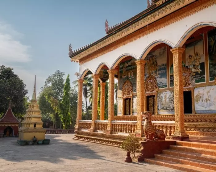 Nach dem Mittagessen geht es weiter zu einem nahegelegenen buddhistischen Tempel. Hier werden Sie einen traditionellen Khmer-Gottesdienst beobachten, der von einem buddhistischen Mönch durchgeführt wird. Er bietet Ihnen einen einzigartigen Einblick in die lokalen religiösen Praktiken und den Glauben der Einheimischen.