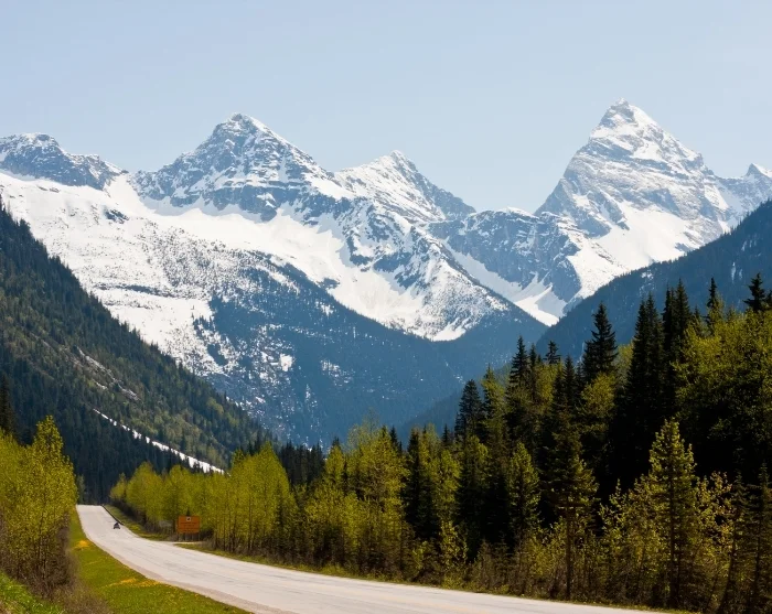 Auf der heutigen Fahrt von Kelowna nach Revelstoke markieren hügelige Täler und Weinberge den Übergang zu verschneiten Gipfeln und tiefen Wäldern.