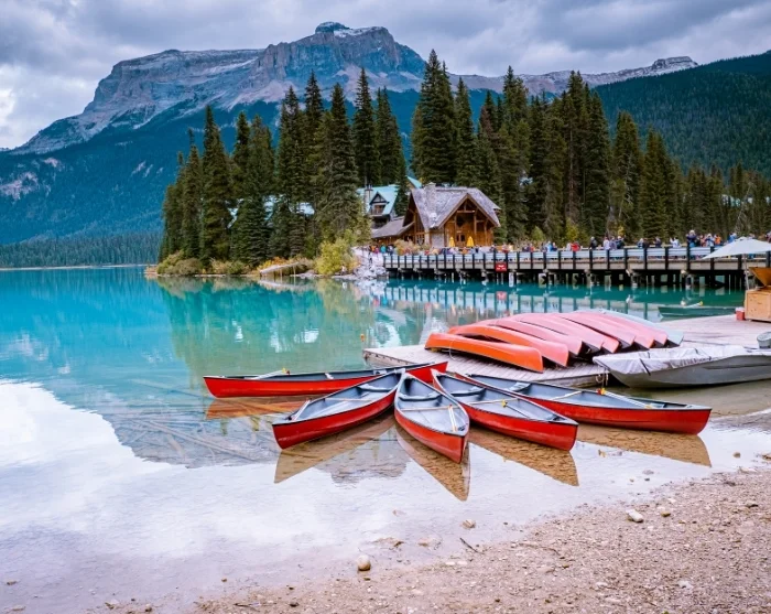 Dort erwartet Sie der ikonische Emerald Lake, der die großartige Natur des smaragdgrünen Sees mit verschneiten Gipfeln, bewaldeten Ufern und der reizenden Emerald Lake Lodge vereint. Schöner kann es kaum werden!